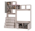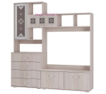 Центральная секция модульной гостиной Белла может быть приобретена как отдельный предмет. Ширина стенки в гостиную 2 метра, в комплект входит удобная ТВ тумба, секция с выдвижными ящиками, открытые и закрытые полки со стеклом. Гостиную Белла можно дополнить прямыми и угловыми шкафами разного размера и составить собственный комплект.