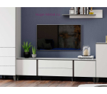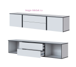 Тумба для телевизора шириной 190 см с двумя выдвижными ящиками и двумя закрытыми полками. ТВ тумба укомплектована навесами, но подвесную тумбу можно дополнить опорами, которые продаются отдельно. Тумба входит в серию мебели для гостиной Амара и выпускается в сочетании белого цвета и серого графита. Два выдвижных ящика с шариковыми направляющими, за распашными створками по бокам - пространство для хранения без полок.