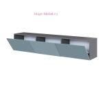 ТВ тумба 190 см для гостиной Сириния голубого цвета с гладкими и рельефными фасадами. Тумба с тремя отделениями внутри без ручек на фасадах, роль ручек выполняют торцы створок. Парящую тумбу можно дополнить опорами для напольной установки, опоры продаются отдельно. Тумбу для телевизора можно дополнить навесными шкафами и полками из той же серии мебели.