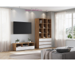 Недорогая тумба для телевизора с двумя выдвижными ящиками и открытыми полками. Выдвижные ящики на шариковых направляющих полного выдвижения. Тумбу можно дополнить настенной полкой, пеналами или шкафом.