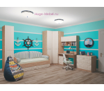 Подростковая комната Богуслава №1: кровать с мягкой спинкой, угловой шкаф, 2 пенала, письменный стол и комод.