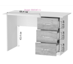 Недорогой письменный стол с тремя выдвижными ящиками. Письменный стол в серых цветах: фасады графит и корпус под дерево в цвете дуб крафт серый. Небольшой письменный стол шириной 120 см выпускается фабрикой в нескольких цветах и вписывается в любой современный интерьер.