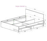 Каркас двуспальной кровати с ящиками Симпл в цвете графит продается без основания под матрас. Кровать может комплектоваться двумя вариантами оснований на выбор: настил ДСП/ЛДСП и реечным настилом из березы.