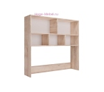 Надстройка для письменного стола Богуслава с тремя открытыми и двумя закрытыми полками. Створки закрытых секций открываются наверх и удерживаются в открытом положении при помощи газлифта.