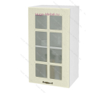 Фасад МДФ для верхних кухонных шкафов 400 мм со стеклом. Фасад кухни "Мария" матовый с фактурой дерева, цвет - кремовый.