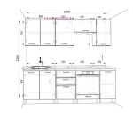 - Длина кухни: 2300 мм (с учетом встраиваемой плиты);
