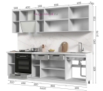 - Длина кухни: 260 см (с учетом модуля для встраиваемой плиты);