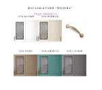 В комплект кухонного гарнитура входят шкафы верхние и нижние с корпусом из ЛДСП и фасадами МДФ, ручки, петли, ножки и роликовые направляющие для ящиков. Дополнительные элементы и оборудование: стеновые панели, цельные столешницы, мойка, сушка, вытяжка, дополнительная фурнитура и техника приобретаются отдельно и в стоимость кухни не входят.