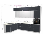 - Высота кухни: 250 см (высота пенала 214 см + высота антресольного шкафа 36 см);