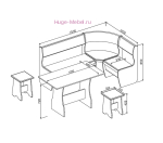 - Размер кухонного уголка: ширина 155 см, высота 81 см, длина 105 см;
