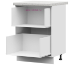 В комплектацию входит: корпус, фасад, ручки, фурнитура для сборки, пластиковые регулируемые ножки, нижний цоколь из ЛДСП. Нижний шкаф кухонный с двумя ящиками продаётся без столешницы, схема сборки кухонного шкафа в комплекте.