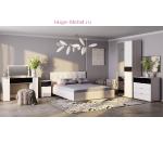 Двуспальная кровать белого цвета с мягкой спинкой и каретной стяжкой. Кровать входит в серию мебели для спальни Кимберли.