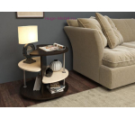 Недорогой многоуровневый круглый журнальный стол с хромированными опорами.