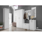 Настенная вешалка для прихожей Апполия шириной 80 см и высотой 60 см. Вешалка белого цвета с 4 крючками для одежды может быть куплена в комплекте с тумбой 80 см с мягким сиденьем.