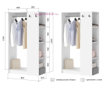 Компактная напольная вешка со штангой для одежды на плечиках, открытыми полками и крючками. Вешалка стеллаж белого цвета подходит для спальни и прихожей, а небольшая высота делает вешалку удобной и для детской комнаты.