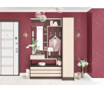 Удобная напольная вешалка для прихожей Ямайка с зеркалом, тумбой для обуви, крючками для одежды и полками. Вешалка подходит для небольших прихожих и узких коридоров.