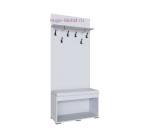 Вешалка с тумбой шириной 90 см подходит для небольших прихожих и узких коридоров. Удобная вешалка с крючками для одежды и тумбой с мягким сиденьем, скошенные фасады заменяют ручки. Тумба с вешалкой входит в серию мебели Плейона и может сочетаться с высокой тумбой, шкафами и пеналами из этой же серии.