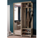 Недорогая прихожая-купе с зеркальной дверью в цвете дуб крафт серый. При ширине 115 см небольшая прихожая включает всё необходимое для хранения одежды и обуви: настенная вешалка с полкой, открытая тумба для обуви и шкаф-купе с выдвижной штангой. Благодаря небольшой глубине в 42 см и двери-купе, прихожую можно разместить в узком коридоре или квартире-студии, где особенно важна экономия места. Прихожие Ларго выпускаются фабрикой в нескольких популярных цветах.
