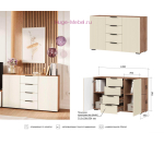 - Комод с 4 выдвижными ящиками и двумя створками, (ШхВхГ): 1200х760х400 мм.