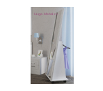 Напольное зеркало на колесиках (роликовые опоры) и штангой для плечиков с обратной стороны.