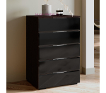 Узкий комод с пятью выдвижными ящиками выпускается в черном и белом цвете.
