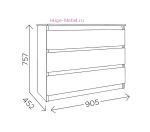 - Недорогой комод темного цвета с тремя выдвижными ящиками. Невысокий комод можно использовать как ТВ тумбу, шариковые направляющие выдвижных ящиков обеспечивают удобство эксплуатации.