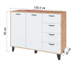 Высокий комод шириной 120 см с 4 выдвижными ящиками и двумя створками. Комод Катрин выпускается в двух цветах: сером и белом с корпусом под дерево.