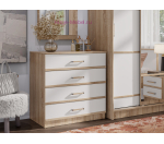 Недорогой белый комод с 4 выдвижными ящиками на роликовых направляющих для спальни Сакура.