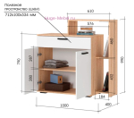 Недорогой комод с вместительным выдвижным ящиком, закрытой полкой и открытыми нишами. Комод шириной 1 метр с фасадами белого цвета и светлым корпусом под дерево.