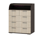 - ширина комода – 800 мм и для облегчения открывания нижние выдвижные ящики оснащены одновременно двумя ручками геометрической формы;