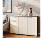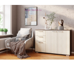 Недорогой комод Стандарт 3 отличается простым дизайном, благодаря чему он может органично вписаться в помещение любого назначения, оформленное практически в любом интерьерном стиле. Длинный комод можно назвать универсальным: с одной стороны за распашными створками находится вместительное отделение с полкой, а с другой имеются два выдвижных ящика на роликовых направляющих. Поверхность комода можно использовать как подставку для телевизора.