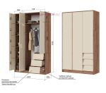 - 3-х створчатый шкаф со штангой, полками и 3 выдвижными ящиками (ШхВхГ): 1200х2100х500 мм;