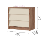- Комод с 3 выдвижными ящиками (ШхВхГ): 800х720х400 мм;