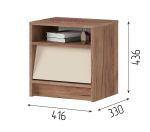 - Прикроватная тумба с выдвижным ящиком и открытой полкой (ШхВхГ): 416х436х330 мм;