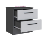Прикроватная тумба серого цвета с двумя выдвижными ящиками подходит для спального гарнитура Вегас мебельной фабрики ТЭКС. Ящики установлены на роликовых направляющих.