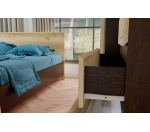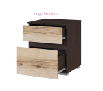 Прикроватная тумба Плейона с двумя выдвижными ящиками. Скошенные фасады заменяют ручки на фасадах, направляющие ящиков роликовые. Недорогая прикроватная тумба в сочетании темного и светлого дерева.