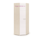 Недорогой угловой шкаф с глянцевыми белыми фасадами из серии мебели Симба. Внутри шкафа полки и штанга, а так же выдвижные ящики.