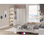 Белый угловой шкаф из серии мебели Хелен. Шкаф с полками и штангой выпускается в двух цветах: сочетании белого и дуба крафт и полностью белого цвета. Глубина по торцевой стенке 460 мм.