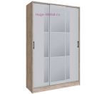 Недорогой шкаф купе шириной 140 см и высотой 220 см с тремя раздвижными дверьми и зеркалом. Внутри шкафа стационарная штанга и отсек с полками. Зеркала с фацетной обработкой. Компактный шкаф-купе выпускается фабрикой в нескольких цветовых решениях, в том числе в декоре под дерево дуб крафт серый со светло-серым фасадом.