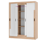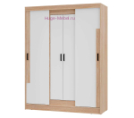 Недорогой шкаф купе без зеркал шириной 160 см. Шкаф-купе белого цвета с корпусом в цвете дуб сонома и черными ручками впишется как в современный, так и в классический интерьер. Центральные створки шкафа распашные и за ними размещен отсек с полками для вещей и обуви, боковые сворки шкафа раздвижные и за ними штанги для одежды с дополнительными верхними полками.