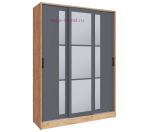 Шкаф купе шириной 160 см и высотой 220 см с тремя раздвижными дверьми и зеркалом. Шкаф-купе 1.6 метра выпускается фабрикой в нескольких цветовых решениях, в том числе в сочетании серого цвета графит и древесного декора дуб крафт золотой. Внутри шкафа стационарная штанга и отсек с полками. Зеркала с фацетной обработкой.