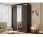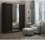 Недорогой шкаф-купе в цвете венге с зеркальной дверью и тремя отделениями внутри.