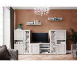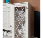Невысокий шкаф витрина для гостиной Ричард со стеклянной дверцей и полками. Высота пенала витрины 136 см подходит для современных гостиных где важно сохранить пространство. Витрина сочетается с другой мебелью для гостиной Ричард: тумбами для ТВ техники, пеналами и шкафами.