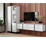 Шкаф пенал с 4 открытыми полками и дверцей внизу. Пенал белого цвета со вставками графит устанавливается на ножках высотой 12 см. За нижней створкой пенала есть полка. Пенал можно купить как отдельный предмет или в составе мебели для гостиной Амара.