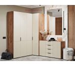 - Матовые кремовые фасады с фрезеровкой и корпус под дерево;