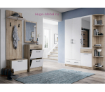 Недорогой шкаф для одежды с выдвижной штангой, полками и ящиком подходит для небольших комнат и узких коридоров . Распашной шкаф без зеркала входит в серию мебели для прихожей Денвер и может быть куплен вместе с пеналом или угловым шкафом.