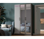 Трехстворчатый шкаф шириной 120 см с зеркалами. Распашной шкаф для одежды высотой 220 см подходит для спального гарнитура Вегас и сочетается с прямыми и угловыми шкафами Вегас. Внутри шкафа одну треть занимают полки и две трети штанга для одежды на плечиках. Корпус шкафа в цвете графит, а фасады в более светлом оттенке серого - серый камень.