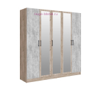 Вместительный распашной шкаф для одежды с тремя отсеками внутри: центральный с полками и два отделения со штангой. 5-створчатый шкаф с тремя зеркальными створками шириной 2 метра вмещает большой гардероб. Шкаф в цвете крафт серый и цемент из серии Вегас фабрики ТЭКС с удобной системой хранения выпускается в нескольких размерах: 40, 80, 120, 160 и 200 см длиной, есть угловой шкаф.