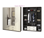 Недорогой распашной шкаф для прихожей или спальни. Шкаф с 4 дверцами и выдвижными ящиками вмещает большой гардероб. Шкафы Квадро изготавливаются в двух сочетаниях: венге/дуб и ясень светлый/темный. Несмотря на невысокую стоимость, шкаф отличается отличным качеством и продуманным наполнением. Внутри шкафа три отделения: центральное со штангой и два боковых с полками.