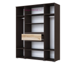 Недорогой шкаф для одежды из серии мебели для спальни Плейона оборудован стационарный штангой для одежды, полками и выдвижным ящиком. Скошенные фасады заменяют ручки. 4-х створчатый шкаф без зеркала с лаконичным дизайном и матовыми фасадами выпускается в двух цветах: полностью белый и венге/дуб делано.